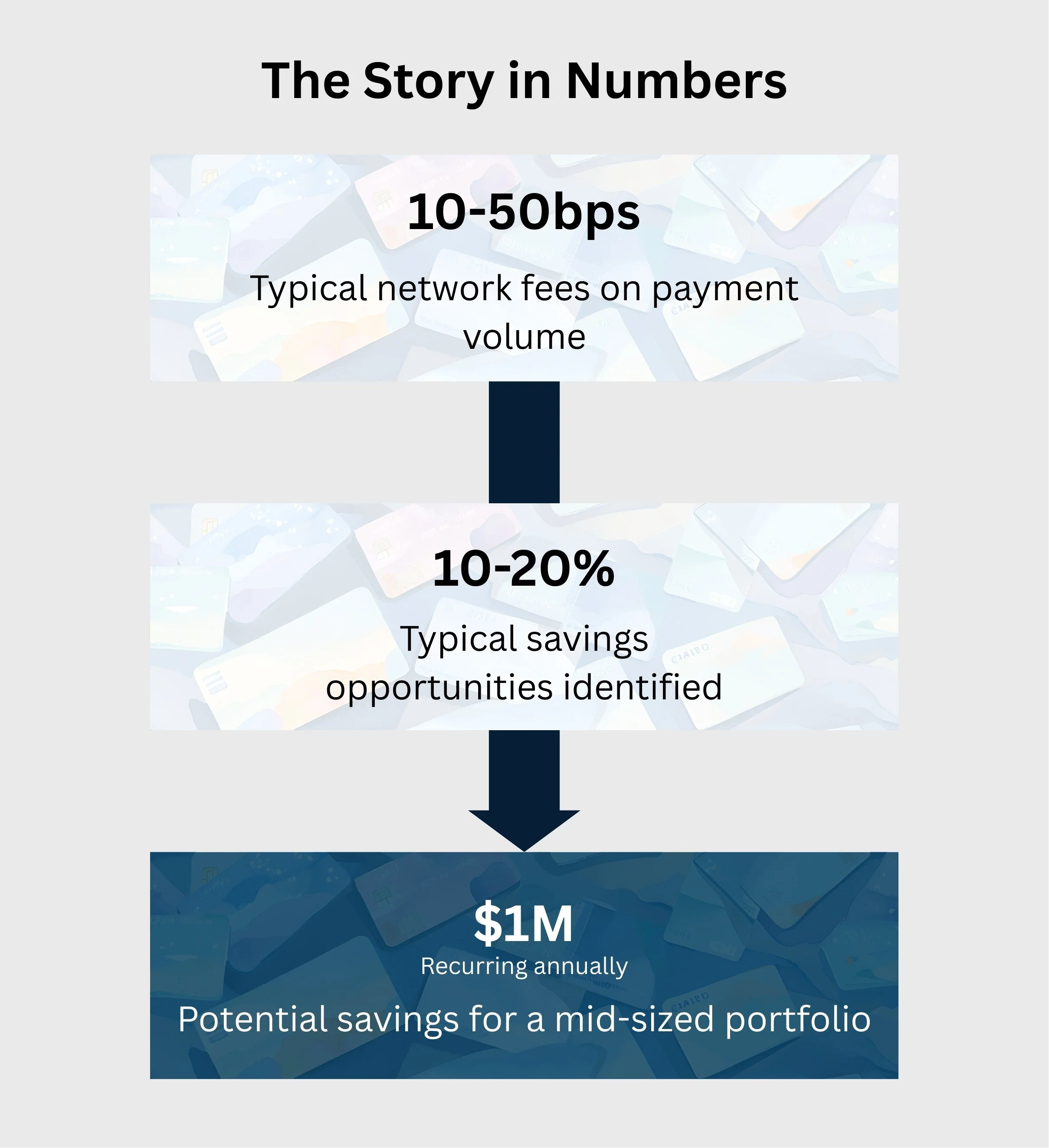We’re saving our issuer and acquirer clients millions in network fees, every year.